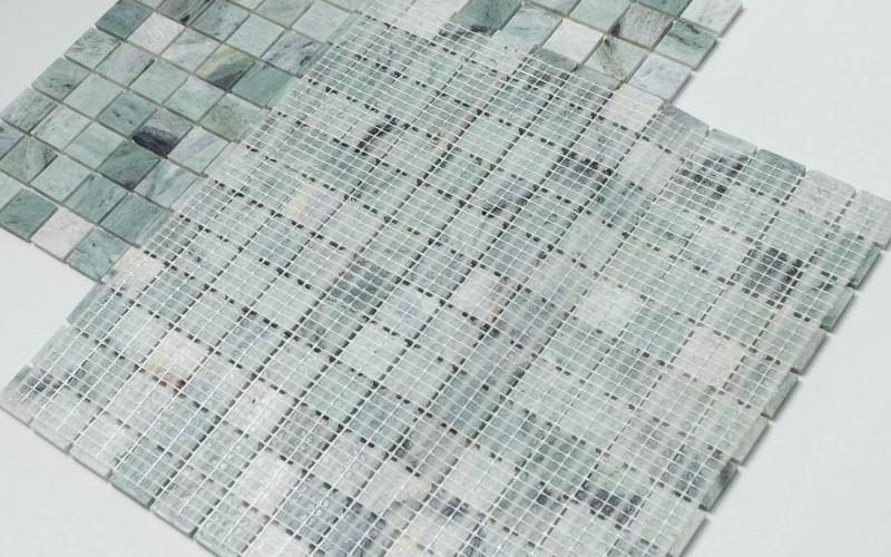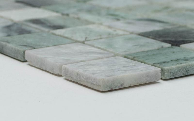 Каменная полированная мозаика KP-763. Мозаика зеленого цвета с имитацией мрамора, будет смотреться интересным и достойным дополнением к вашему интерьеру.